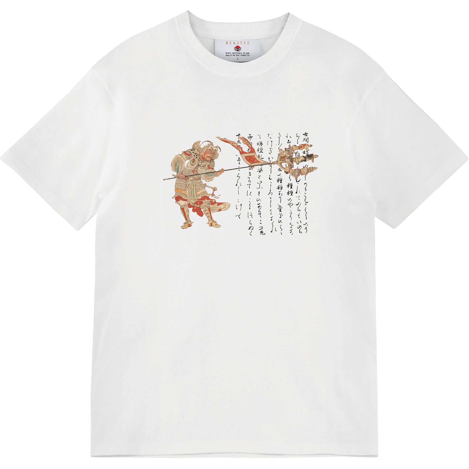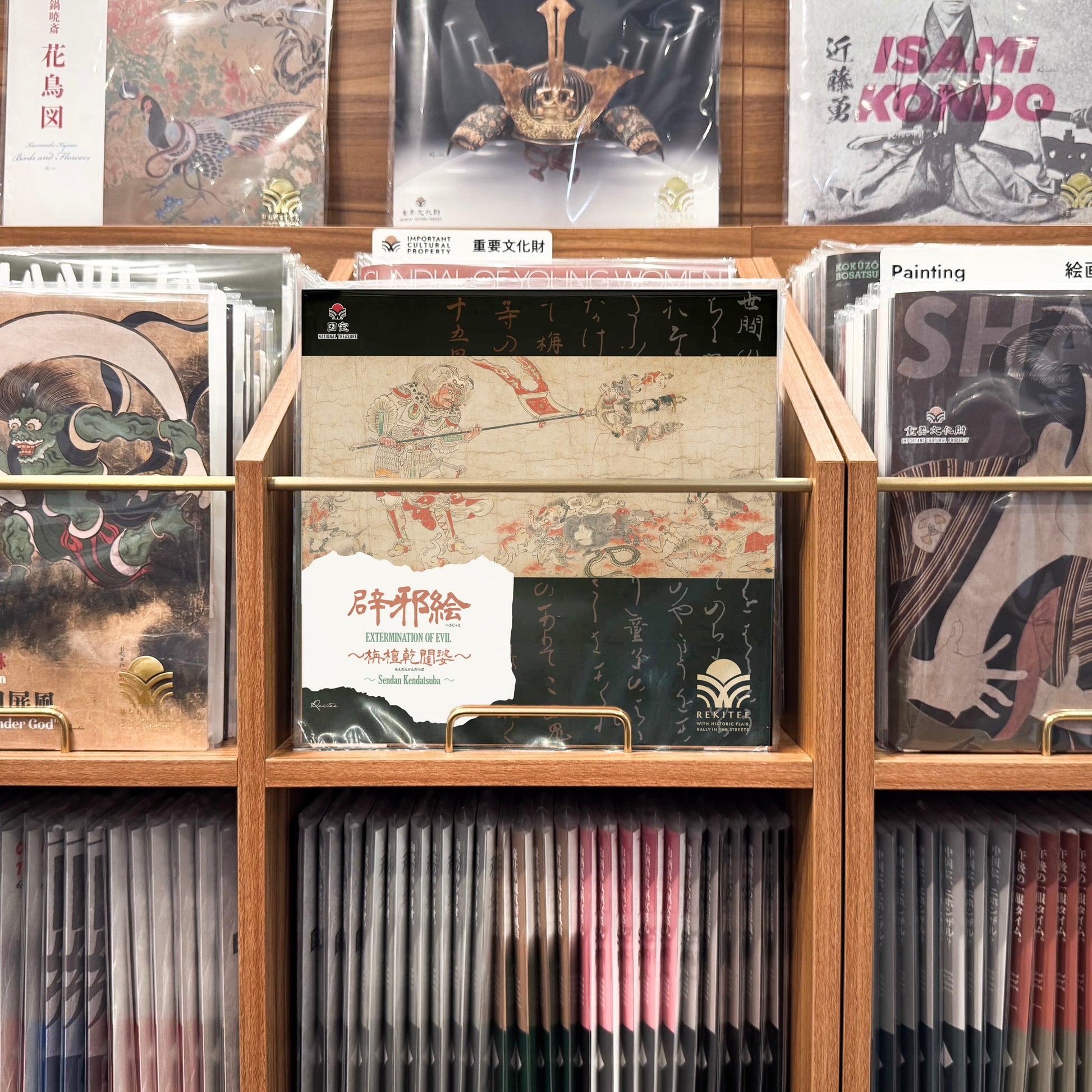 This artwork depicts Sendan Kendatsuba, who exterminates evil spirits that bring harm and illness. Originally a music deity from India, he became one of the Eight Legions serving Taishakuten. In this scene, moved by the sorrow of mothers grieving for their children, Sendan Kendatsuba beheads fifteen demons said to harm unborn babies or cause illness in infants, and impales their heads on his trident.