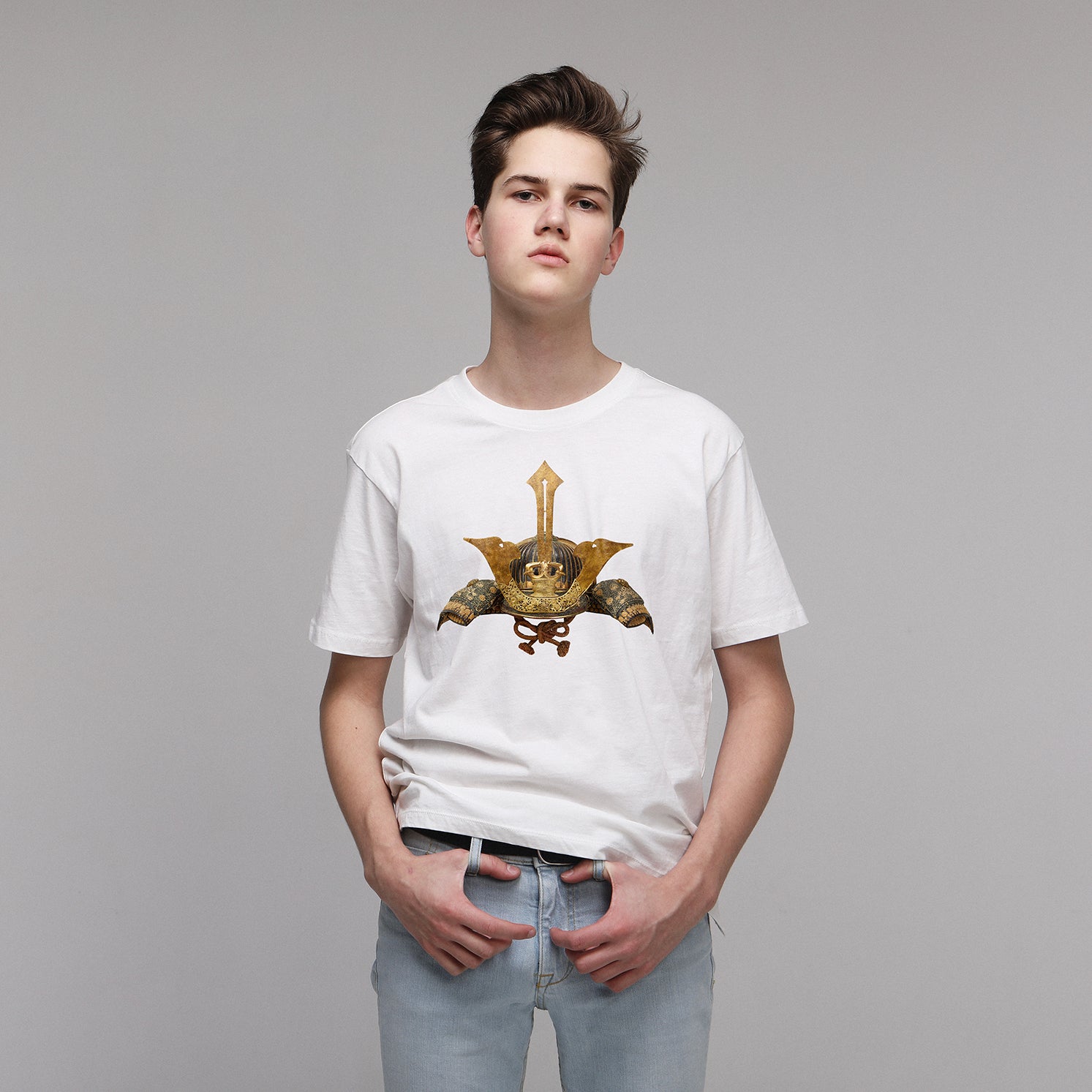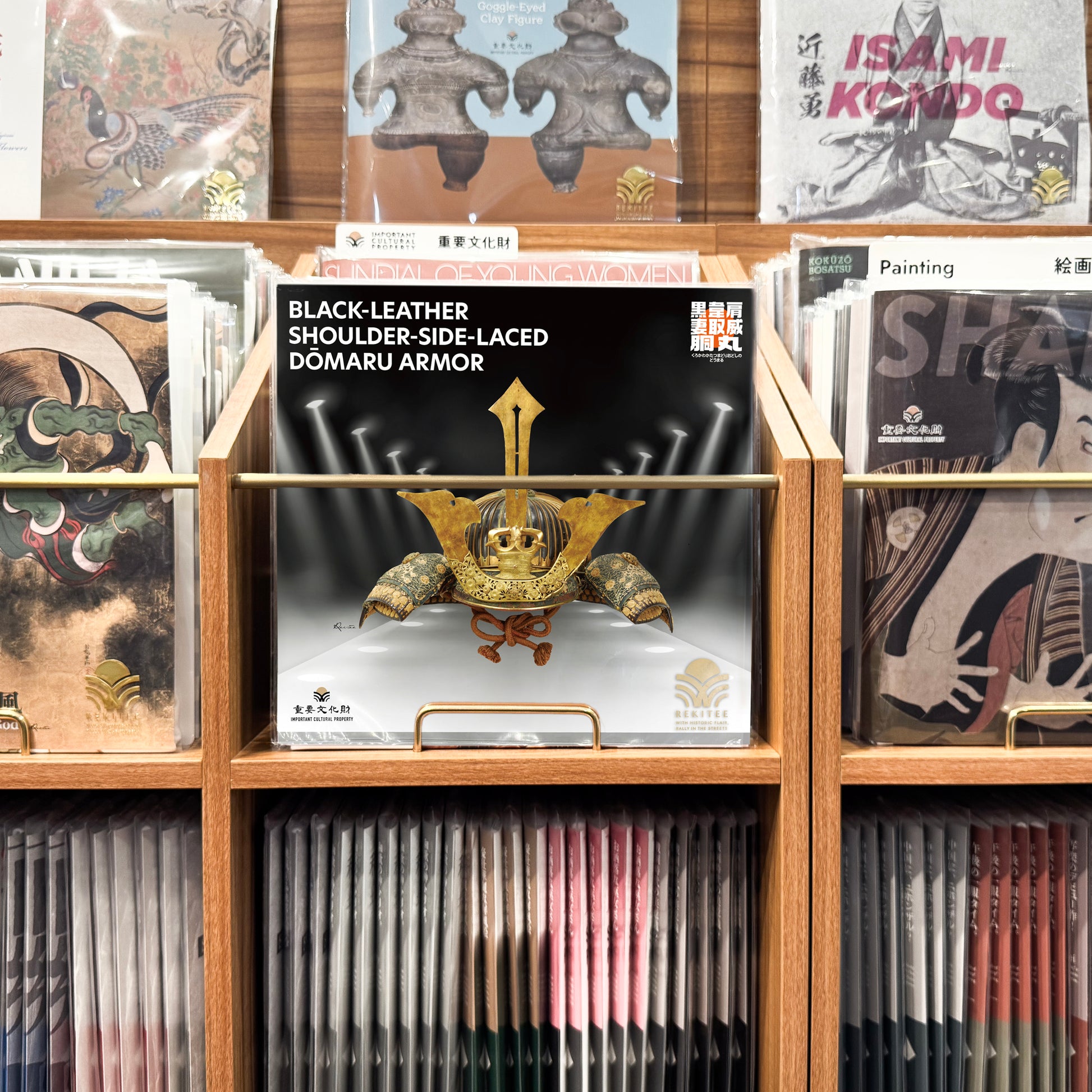 The Dōmaru is a type of armor that first appeared in the mid-Heian period. Initially worn primarily by lower-ranking samurai and lightly armored foot soldiers, it was later adopted by high-ranking warriors as well. This particular piece features a richly colored design, with black-lacquered leather dyed in indigo and small plates laced together with white and crimson threads. The helmet is adorned with "Kuwagata" and a "Sanko sword," a symbol believed to ward off evil.